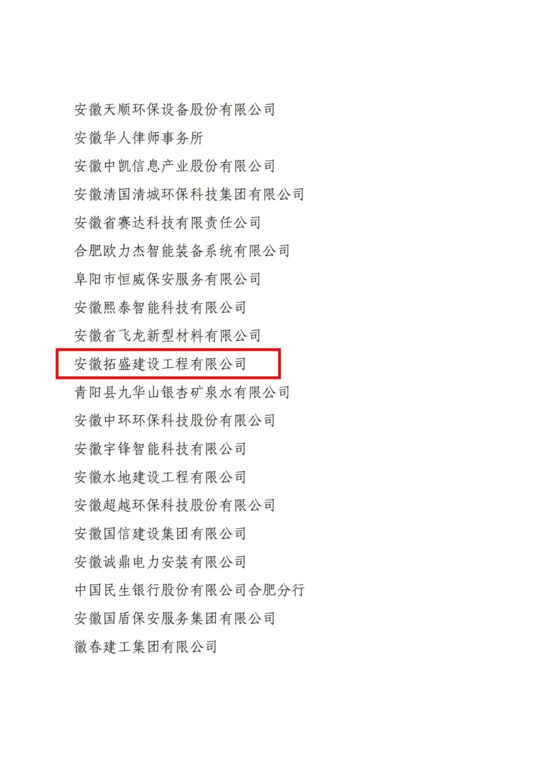 安徽拓盛建设工程有限公司同时获评“先进单位”称号,彰显了公司在科技创新、管理效能和社会责任履行方面的卓越表现,赢得了行业和社会的高度认可与信任。